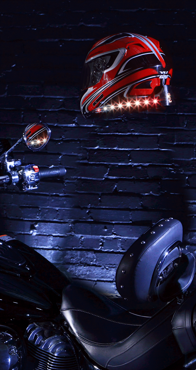 With just over 3000mAh, the BikeLink Helmet Unit delivers extreme run-time between charges. Ride for hours with powerful lighting FX and DOT color protocols. If 4-5hrs of non-stop riding isn’t enough, simply use the bikes 12v power supply and a USB-C cable and plug directly into the Helmet Unit. This will provide endless run time. The Helmet Unit is equipped with a USB-C connection & a wireless charging system. The BikeLink Wireless Charge Plate is sold separately.